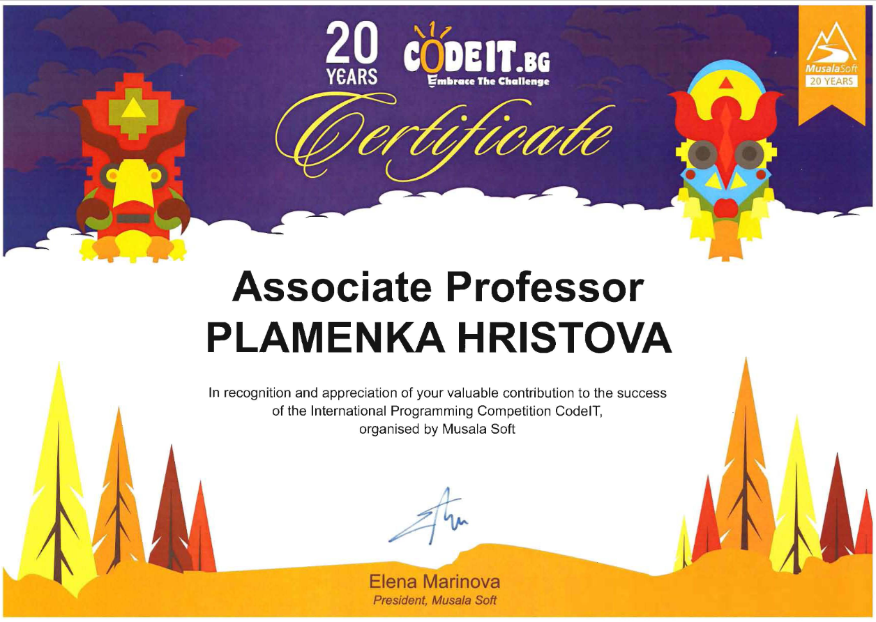 Поздравления за участниците, техните ръководители и организаторите на олимпиадата. Гордеем се с това, че нашите колеги проф. Каталина Григорова и доц. Пламенка Христова имат съществен принос в подготовката и провеждането ѝ.