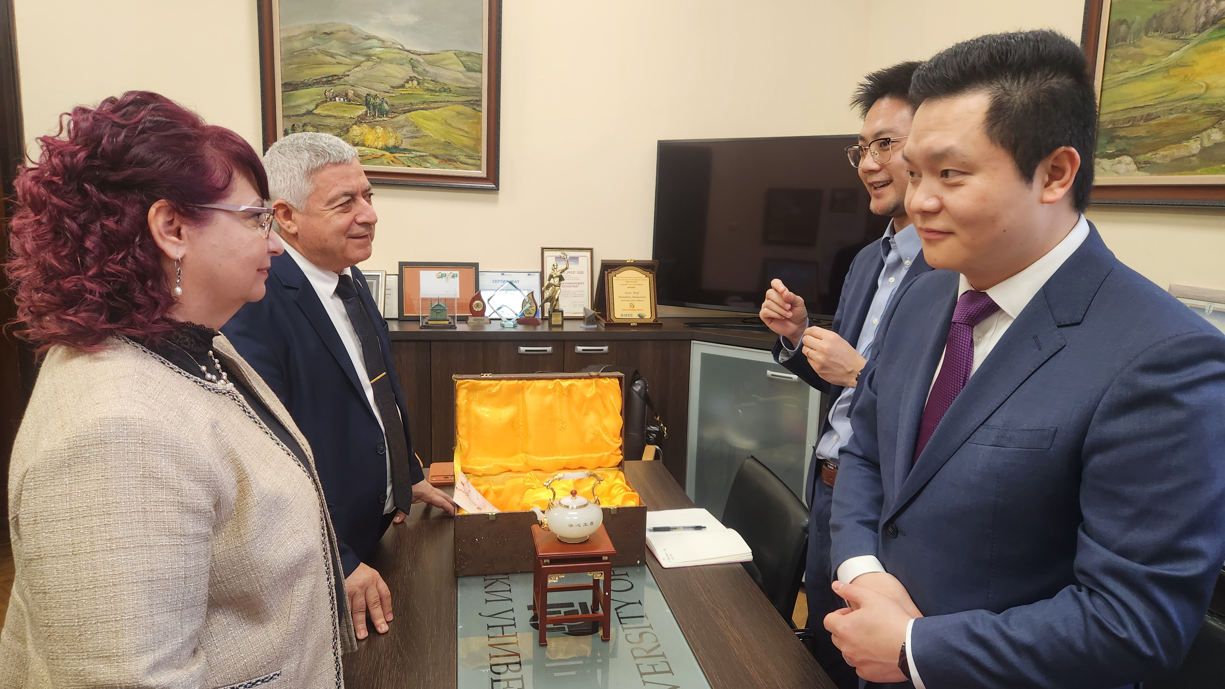 At the end of the meeting, the Rector, Assoc. Prof. Desislava Atanasova, PhD and Acad. Hristo Beloev, dscEng thanked the Ambassador for the visit and emphasized that the University of Ruse will continue to develop its mission as an active partner in educational and cultural exchange between the two countries.