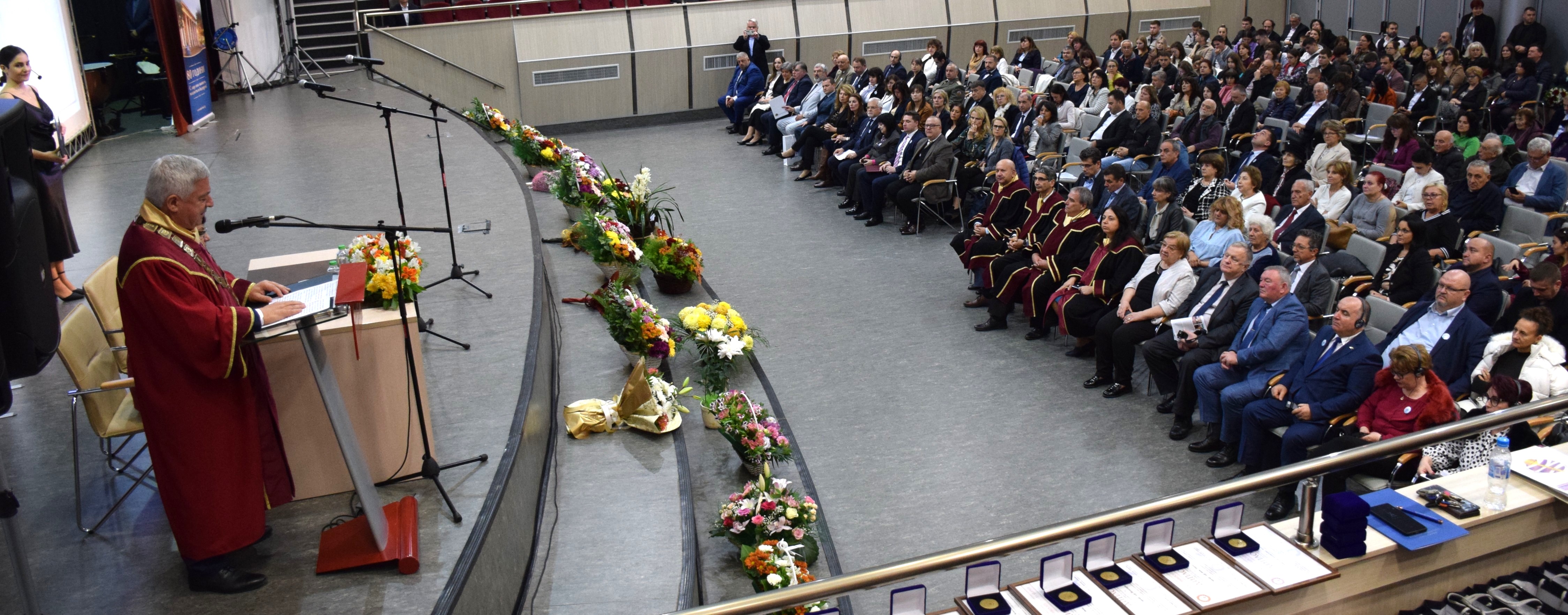 The celebration was attended by long-time partners from higher education institutions in Bulgaria and abroad, numerous representatives of business, public and non-governmental organizations, cultural institutions and secondary schools in the city and the region.