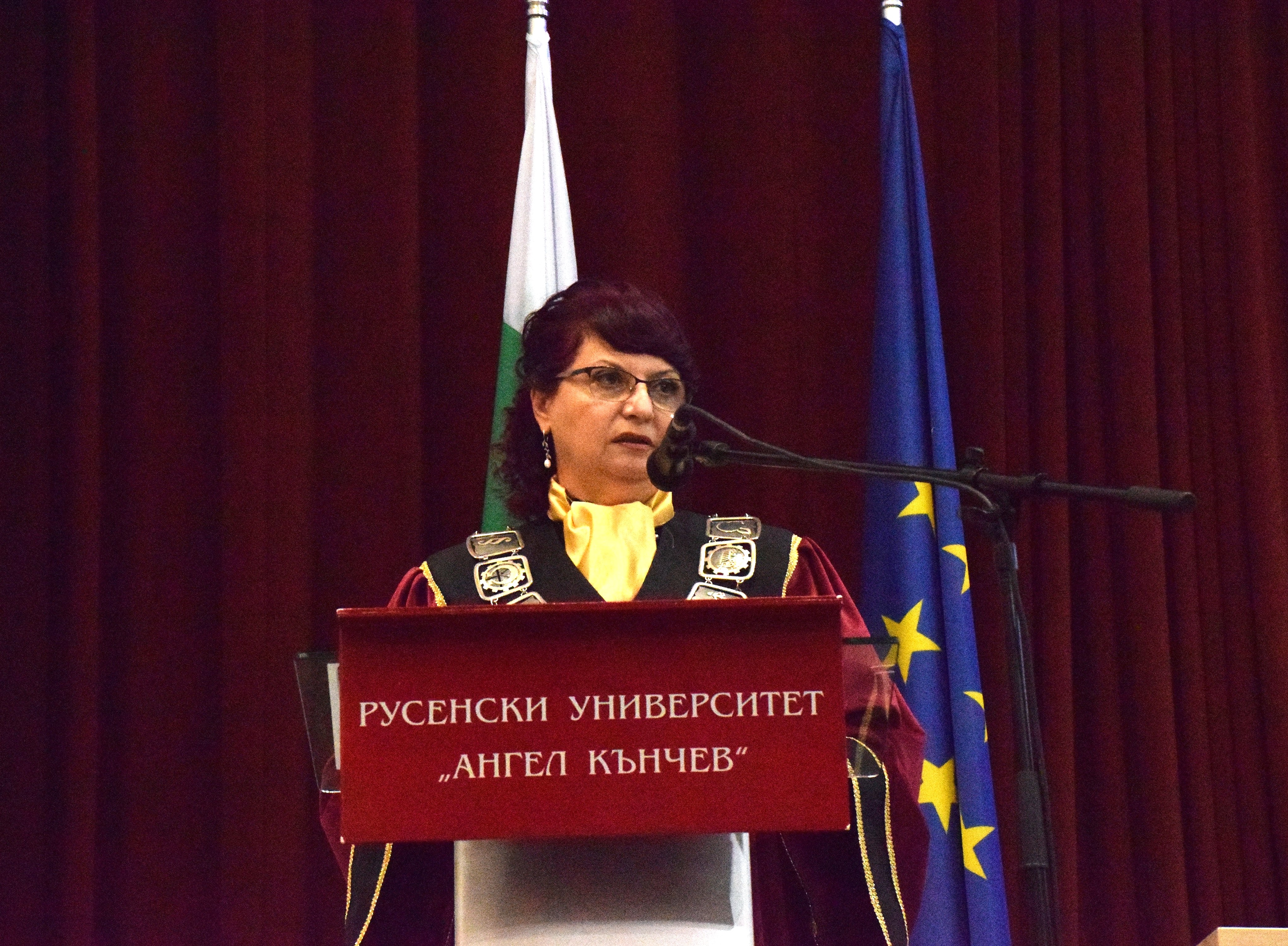 The solemn ceremony was opened by Rector of the University of Ruse, Associate Professor Desislava Atanasova, PhD. She then gave the floor to Associate Professor Tanya Grozeva, PhD – Secretary General of the University to declare the legality of the procedure.