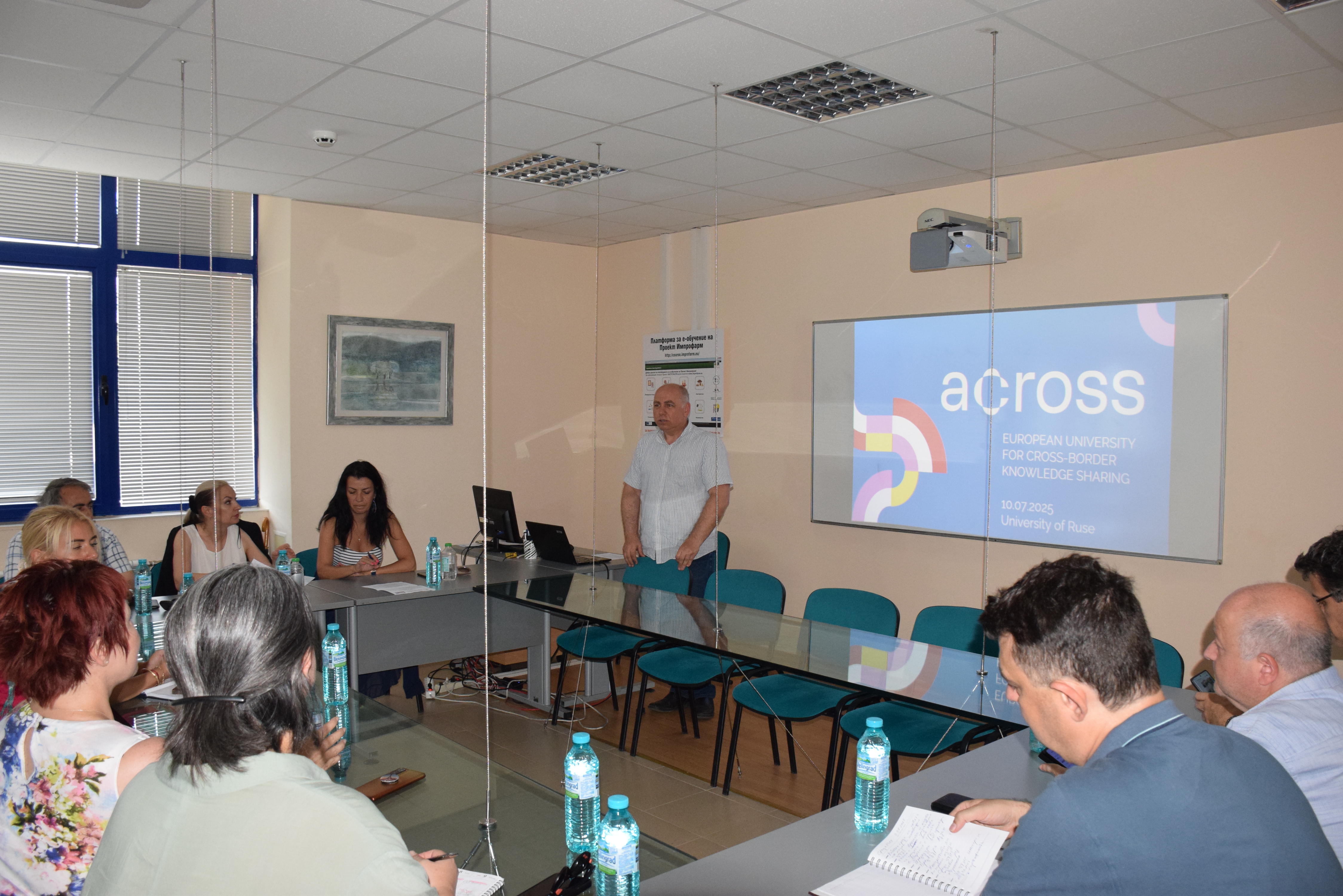 Today, January 31st , 2025, an informational meeting of the team involved in the work program under the ACROSS-European University for Cross-border Knowledge Sharing project was held in a meeting room of the Rectorate of the University of Ruse.