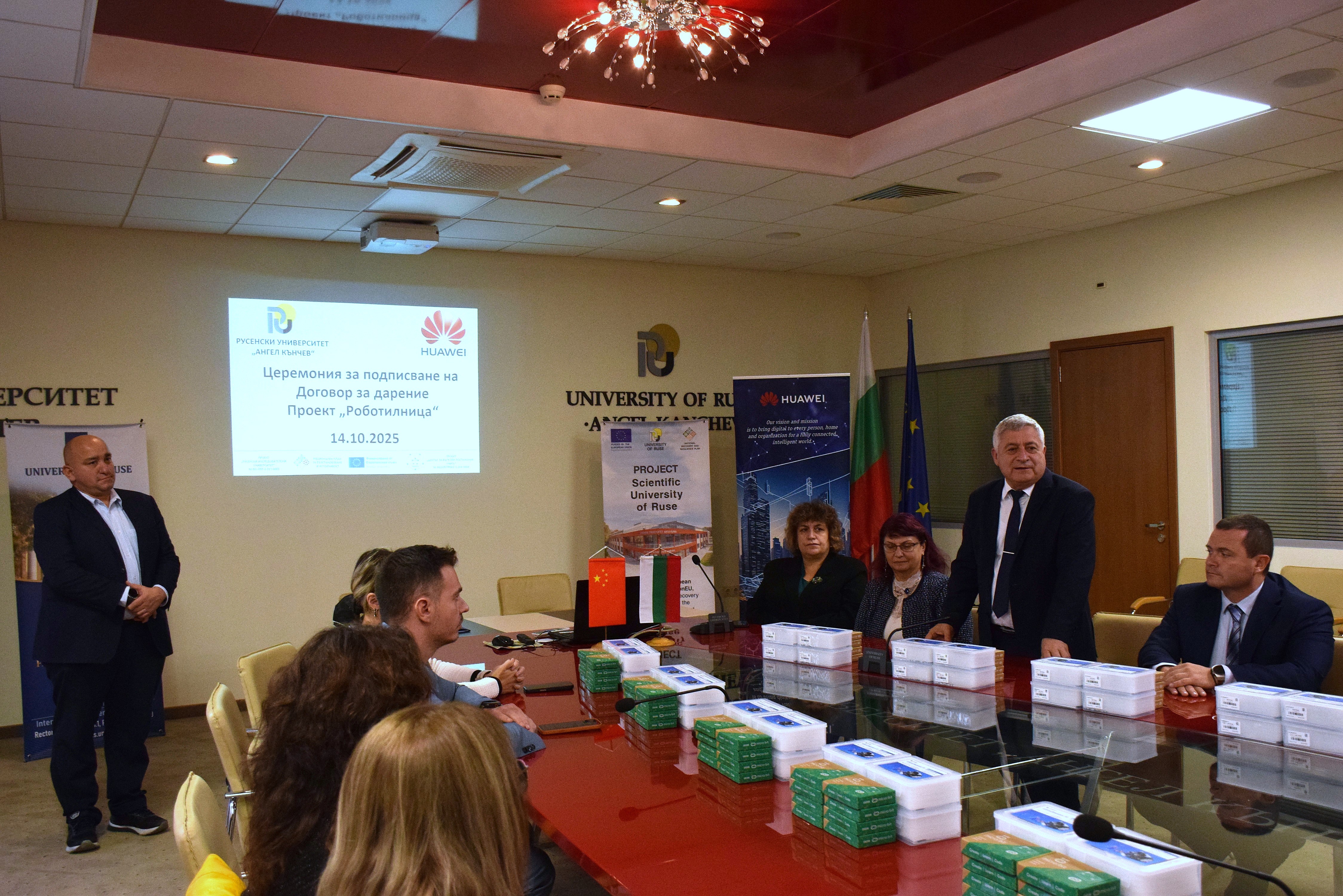 The University of Ruse and Huawei Technologies Bulgaria have already signed memorandums of cooperation and donation contracts. It is thanks to the latter of these agreements that two training courses on block-based programming of microcontrollers and robots are currently being held at the university with teachers from more than 20 schools on the territory of the Ruse Municipality.