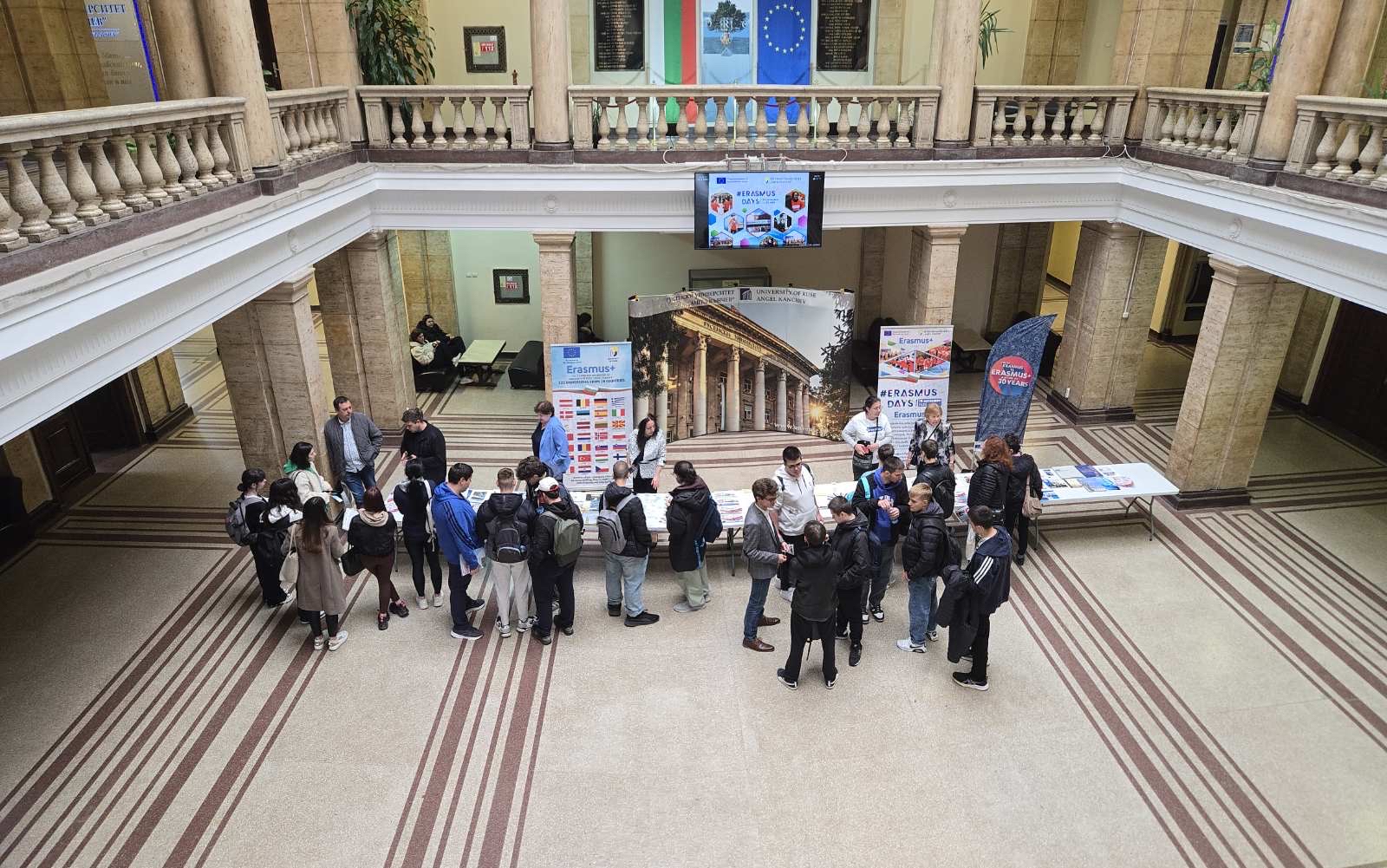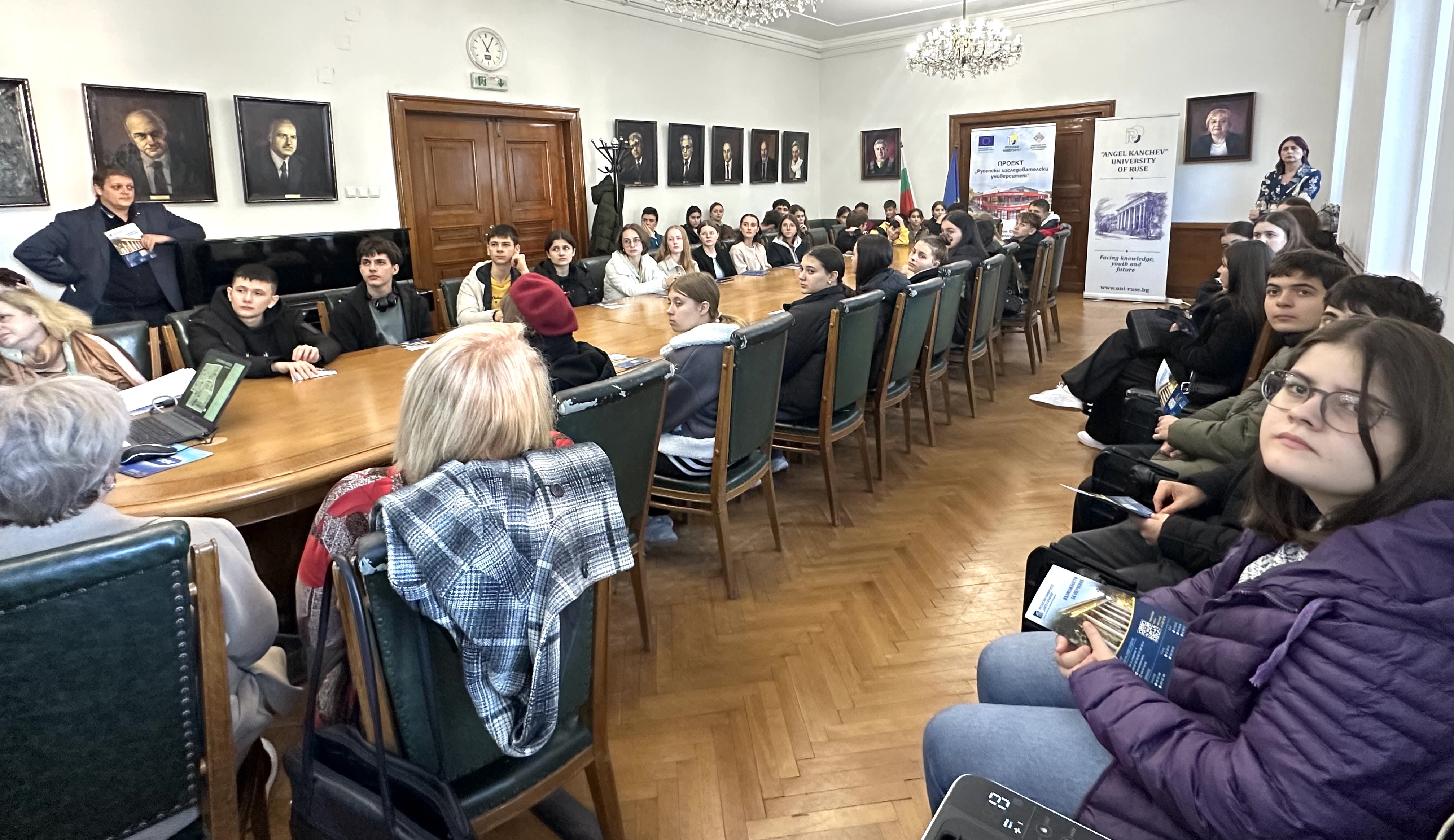 The solemn day began with the laying of wreaths at the monument to the patron of the University of Ruse, Angel Kanchev. Immediately afterwards, the traditional annual exhibition of "Printed and electronic publications of the lecturers of the University of Ruse" was opened in the lobby of the Rectorate. The solemn academic council was part of the celebration of the University of Ruse.